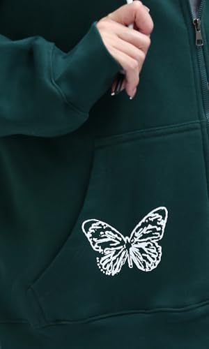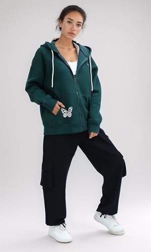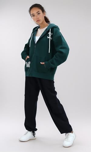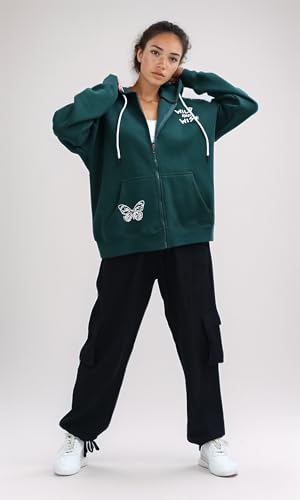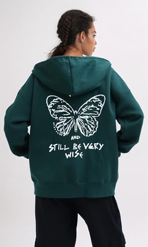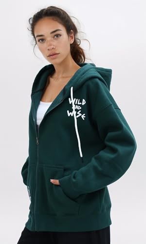 ريفين سويت شيرت للنساء مطبوع بقصة عادية وسوستة بلون اخضر داكن
