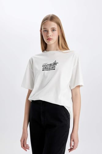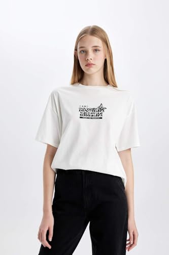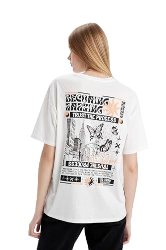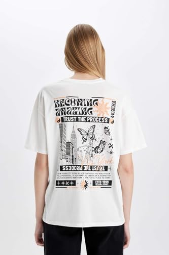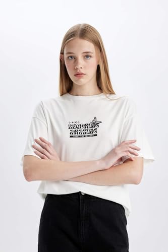 تيشرت اوفر سايز منسوج بأكمام قصيرة ورقبة دائرية ضيقة للنساء من ديفاكتو، موديل D1983AX