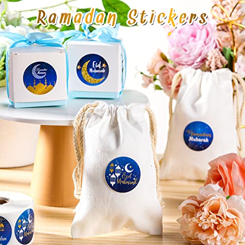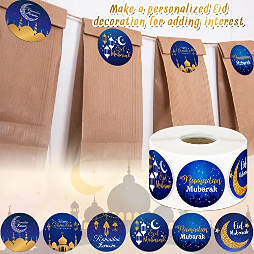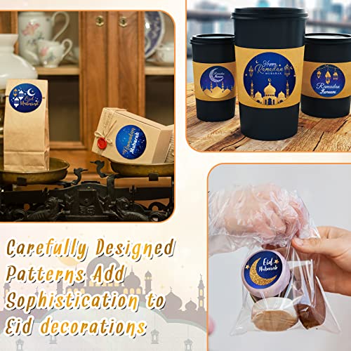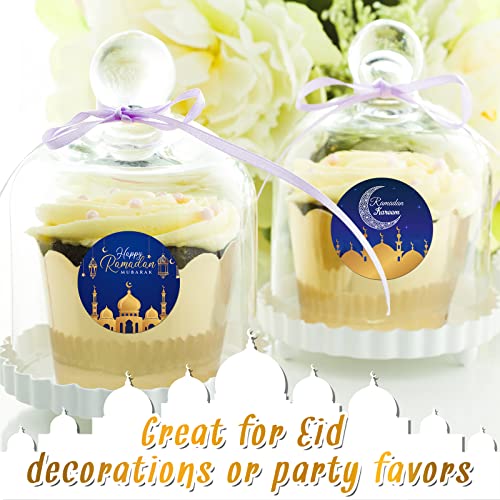 ستيكرات لاصقة بتصميم رمضان كريم وعيد مبارك لديكور حفلات الاعياد وشهر رمضان الكريم من نيزيو، 600 قطعة، (أزرق وذهبي، تصميم زاهي)