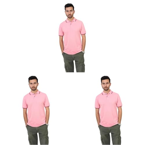 قميص بولو للرجال من سوتكس مع شريط على القبة، بينك، مقاس XL (عبوة من 3 قطع)