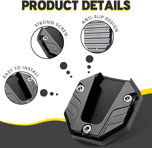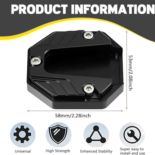 - [وظيفة احترافية]: توفر دعامة التمدد مساحة دعم أكبر للدعامة الأصلية، مما يساعدك على ركن دراجتك النارية على الطرق الإسفلتية الساخنة والأراضي العشبية والأسطح الأخرى، وتمنع الدعامة من الالتصاق في الأرض الناعمة مثل الرمل والحصى.