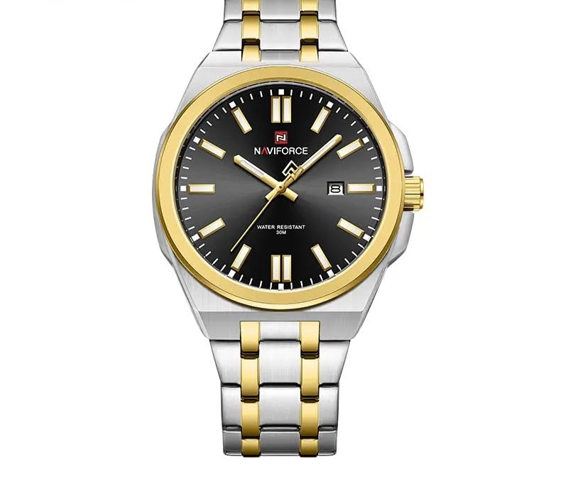 نافي فورس ساعة كوارتز للرجال NF9226 بتصميم بسيط وعصري ومينا كبير مضيئة ومقاومة للماء وعالية الجودة بلون فضي