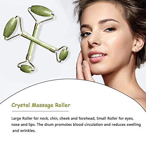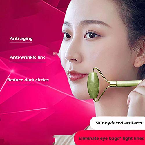 - رولر يشم للوجه لتدليك البشرة الطبيعية ومعالجتها، مناسب للعينين والوجه والجسم والرقبة وللتنحيف وشد التجاعيد من ديفلايف، لون أخضر دايون.