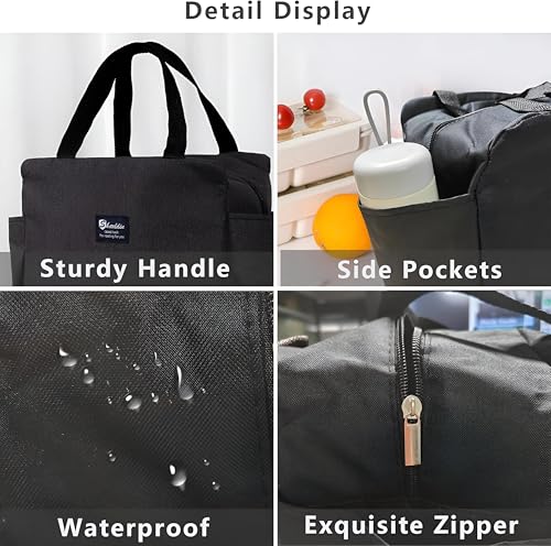 لانش باج للرحلات كبيرة ومعزولة ومقاومة للماء، مثالية لكل من الرجال والنساء بحجم مثالي 25 سم × 25 سم للعمل أو الوجبات اليومية (لون أسود)