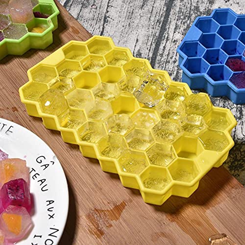 - سوف تحصل على صينية مكعبات الثلج بألوان مختلفة. صينية مكعبات الثلج هذه على شكل قرص العسل مع 37 تجويف يمكنك صنع الكثير من مكعبات الثلج في وقت واحد.
