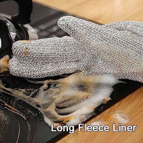 زوج واحد من جوانتي سلك لغسيل الأطباق وتنظيف المطبخ عازلة للحرارة ومقاوم للماء، متين ولطيف على البشرة وقابل لإعادة الاستخدام لغسل الأطباق وتنظيف الحلل من جيبكوين