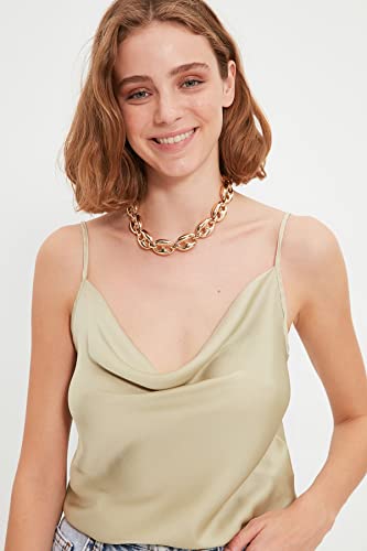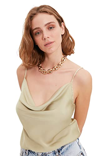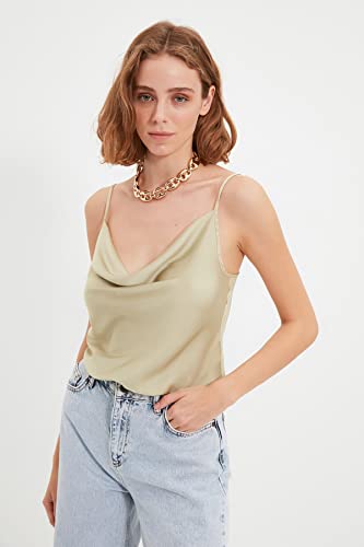 بلوزة من نسيج محبوك من الساتان بياقة بدون حمالات للنساء طراز TWOSS19BB0161 من ترنديول