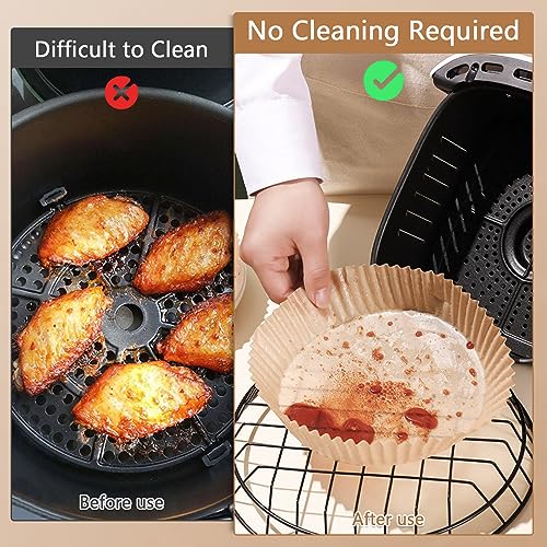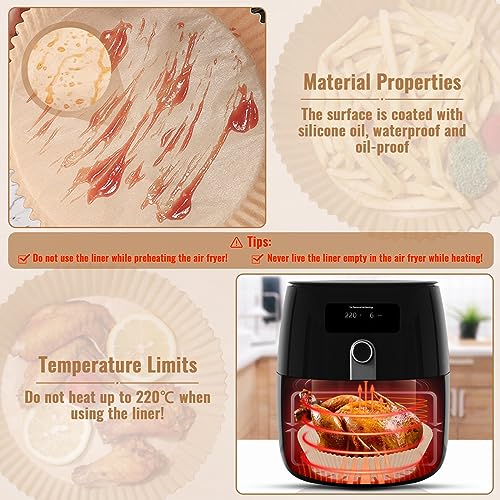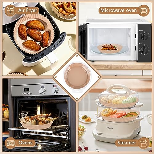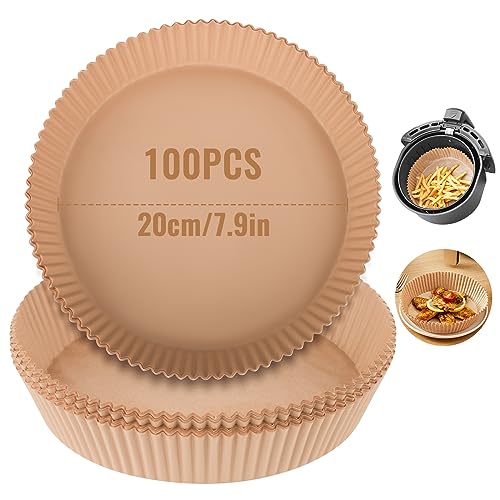 ورق خبز للقلاية الهوائية الساخنة، ورق خبز دائري بقطر 20 سم مقاوم للالتصاق ومقاوم للماء والزيت للاستعمال مرة واحدة، ورق زبدة للقلاية الهوائية والفرن والميكروويف، عبوة من 100 قطعة