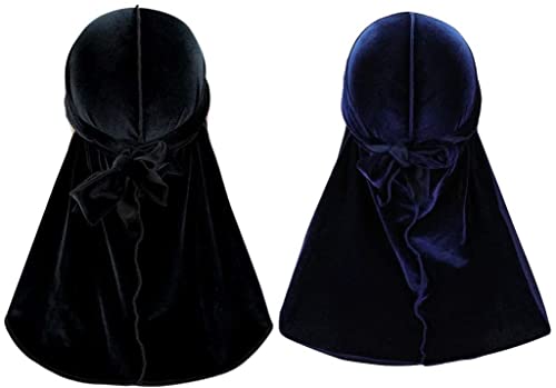 قبعة دوراجز مخملية للرجال عبوة من قطعتين قبعات دو راجز ذات الذيل الطويل باشرطة عريضة ناعمة للامواج اسود وازرق كحلي مقاس واحد