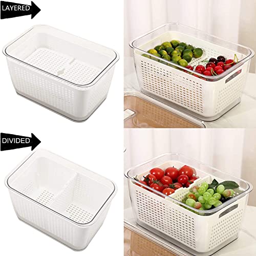 علبة حفظ الطعام الطازج من شيموياما للمطبخ | متوسطة | ابيض | درج تصريف 3 في 1 مع مصفاة للخضروات والفواكه | منظم ثلاجة محكم الغلق تهوية وتصريف