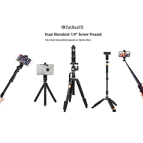 حامل ثلاثي القوائم مشبك للموبايل محول برغي 6.4 ملم دوران 360 درجة وثبات 2 في 1 كاميرا موبايل ذكي ايفون من زاترويز أسود