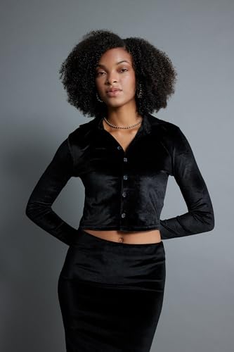 بلوزة قطيفة قصيرة بنصف أزرار وأكمام طويلة للنساء من ديفاكتو