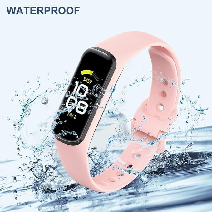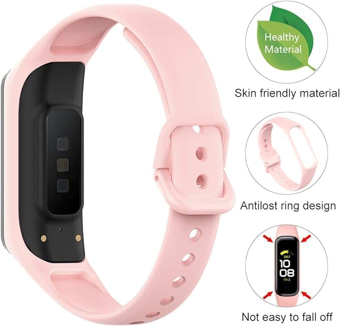 سوار بديل لجهاز تتبع اللياقة البدنية متوافق مع سامسونج جالاكسي فيت 2 (SM-R220) للنساء والرجال، سوار سيليكون ناعم قابل للتعديل (بينك) (عبوة من قطعتين)