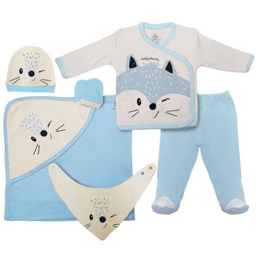 طقم للأولاد مكون من 6 قطع مكون من تيشرت بأكمام طويلة وسروال ومريلة وقفازات وقبعة وبطانية للنوم للأطفال الصغار من بيبي شورا (عبوة من 1 قطعة)