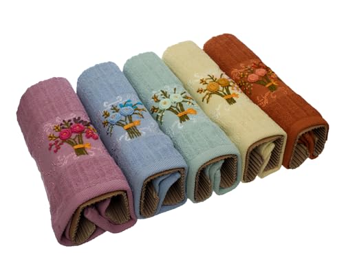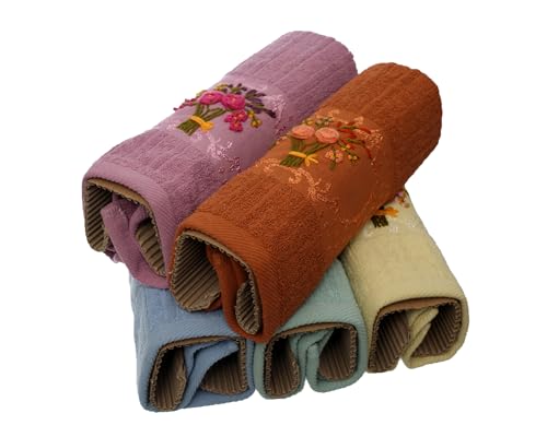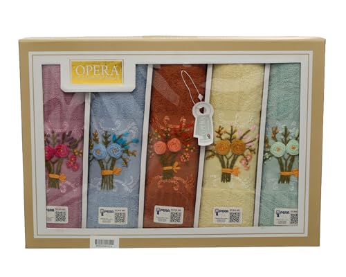 فوط 18302-218 معالجة مضادة للوبر والانكماش 100% من القطن من أوبرا، مقاس 50 سم × 1 م، متعددة الألوان - طقم من 5 فوط