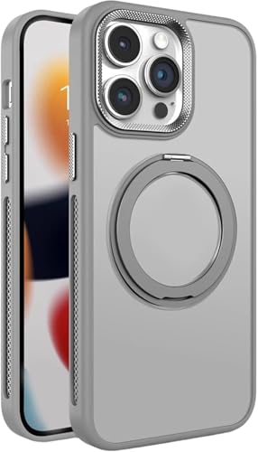 جراب حماية من V Volt متوافق مع iPhone 16 Plus – كفر شفاف مع حامل حلقي معدني 360 درجة ومسند مدمج – غطاء مضاد للصدمات مع حماية للكاميرا والحواف (رمادي)