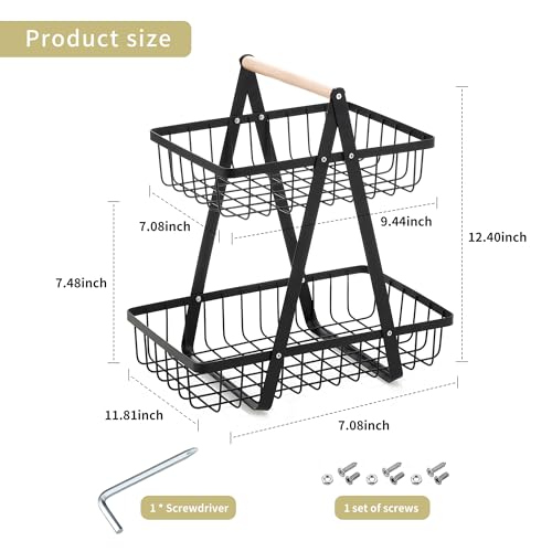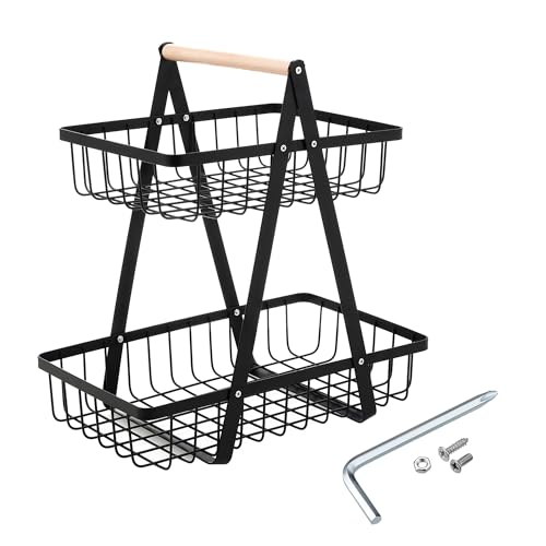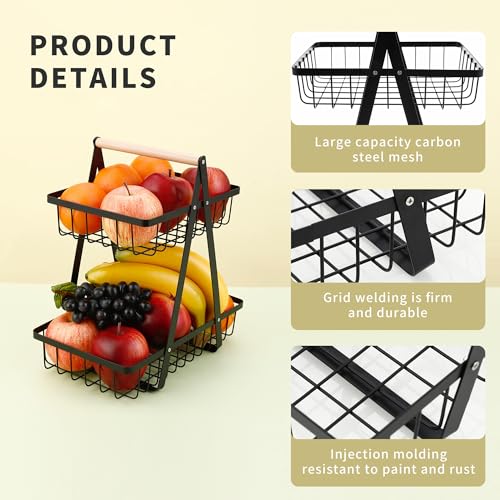 - هيكل متين: يتميز حامل الفواكه المكون من طابقين بتصميم مصنوع من معدن الفولاذ عالي الجودة مع لحام قوي، كما أن الطلاء الأسود يحميه من الصدأ، مما يجعله قويًا ومتينًا للاستخدام طويل الأمد.