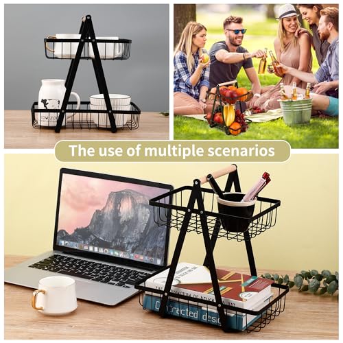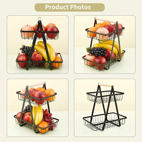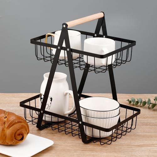 سلة فاكهة من طبقتين هاويولو، حامل قابل للإزالة، وعاء بمستويات عصرية للمطبخ، معدني، مناسب لوضع الفاكهة والكعك والخضروات وما إلى ذلك في المنازل والمطابخ والمكاتب أسود