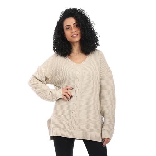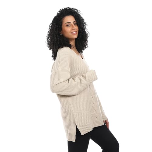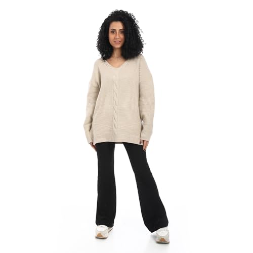 بلوفر طويل من الصوف برقبة على شكل حرف V للنساء
