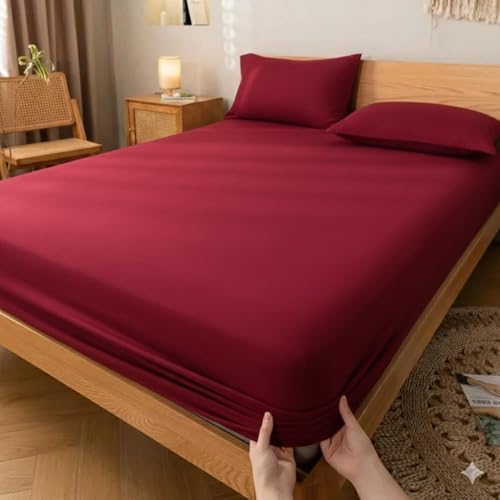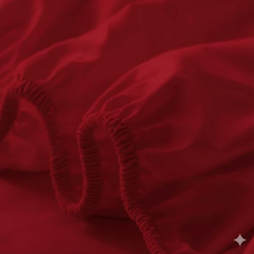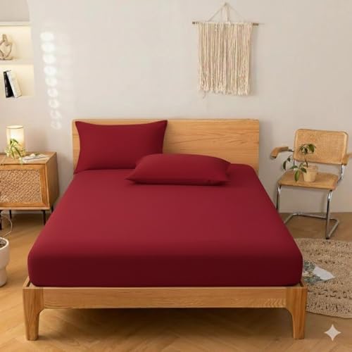 طقم ملاية استيك سادة قطن - 3 قطع (1 ملى - 1 مخدة - 1 خدادية) - مقاس (1200cm*200*سم *30سم) - احمر