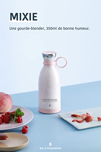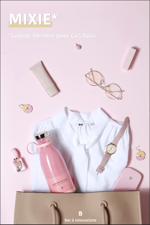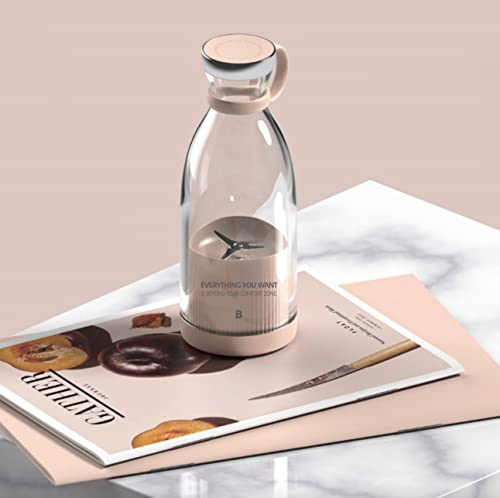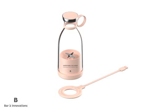 زجاجة مياه خلاط لاسلكية محمولة سعة 350 مل ميكسي للعصائر والميلك شيك مع شاحن لاسلكي يعمل بالحث الحراري خالية من البيسفينول أ بلون بينك زهري 50 واط بار ايه اينوفيشجينز