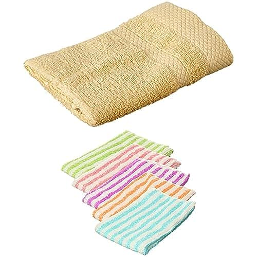 فوطة قطن لليد بنمط شكل قرص العسل من روزا 33 × سم - بيج + طقم فوط للمطبخ 5 قطع متعددة الالوان أصفر للمنتجات المنزلية Medium