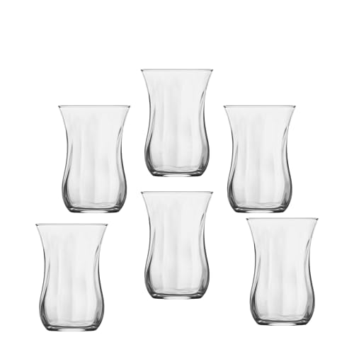 طقم أكواب قهوة تقليدية من لاف، مصنوعة من الزجاج، سعة 115 سم مكعب، شفافة اللون، بتصميم أنيق، عدد القطع: 6