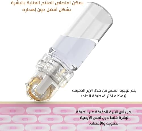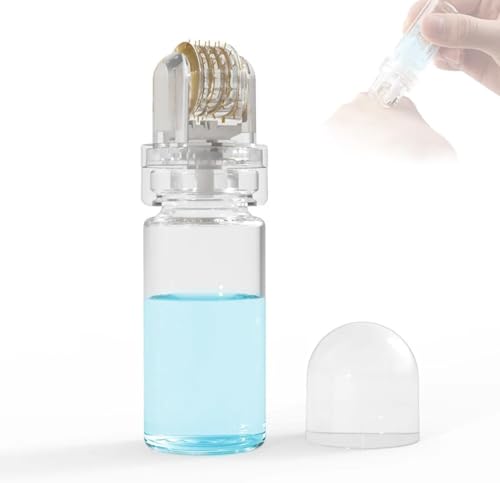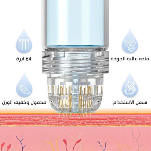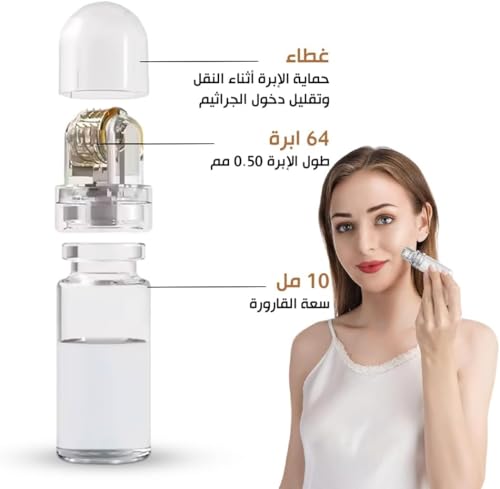 درما رولر بـ 64 إبرة دقيقة من التيتانيوم للوجه والشعر واللحية مزودة بقارورة قابلة لإعادة التعبئة لتطبيق السيروم وغطاء صحي (1.00 ملم)