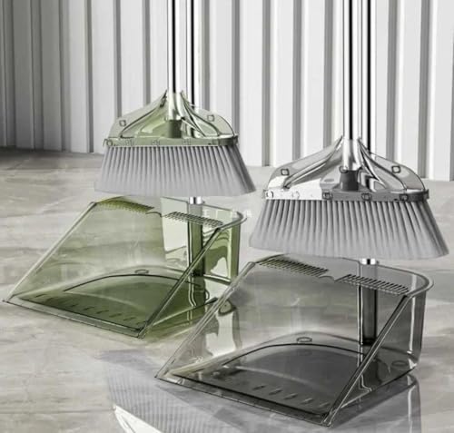 مقشة وجاروف بمقبض قابل للتعديل مع مجرفة غبار ذاتية التنظيف للمنزل والمطبخ وغرفة المكتب والردهة والأرضية (متعددة الألوان)