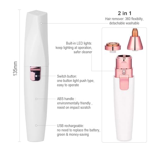 - حلاقة يومية سريعة في دقائق: تعمل ماكينة تقليم الحواجب وإزالة شعر الوجه على ترويض الشعيرات الشاردة قبل الفصل الدراسي أو العمل أو زيارة حفل زفاف - بضع تمريرات لطيفة وستغادرين ببشرة ناعمة عند الشفة العليا والذقن والحواجب.