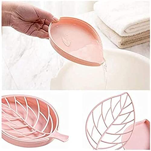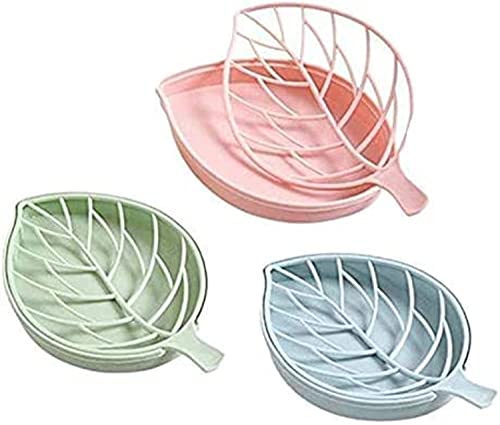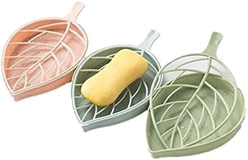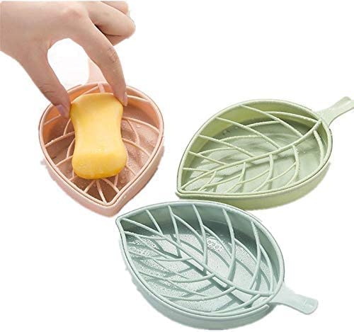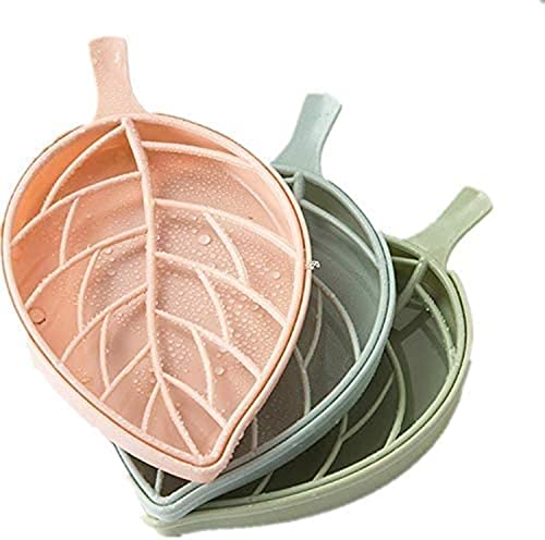 مجموعة علب صابون على شكل ورقة شجر من 2 قطعة مع اطباق صابون للتصريف من البلاستيك (متعددة الالوان)