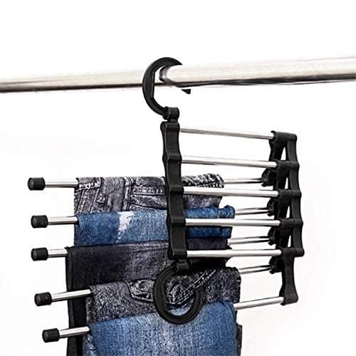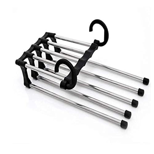 شماعة بنطلونات 5 في 1 قابلة للتعديل بتصميم مانع لانزلاق الملابس مع خطاف للتعليق في الدولاب منظمة للكرفتات والأحزمة والسكارفات، رف شماعة لتعليق البنطلونات موفر للمساحة، مقاس واحد