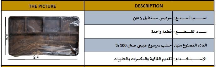 سرفيس تسالي خشبي 5 عين مقاس 38 سم × 23 سم H&k Art