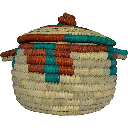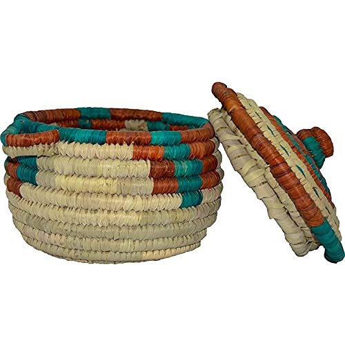 - سلة خبز مستديرة ملونة مغطاة مصنوعة من الخوص صناعة يدوية
