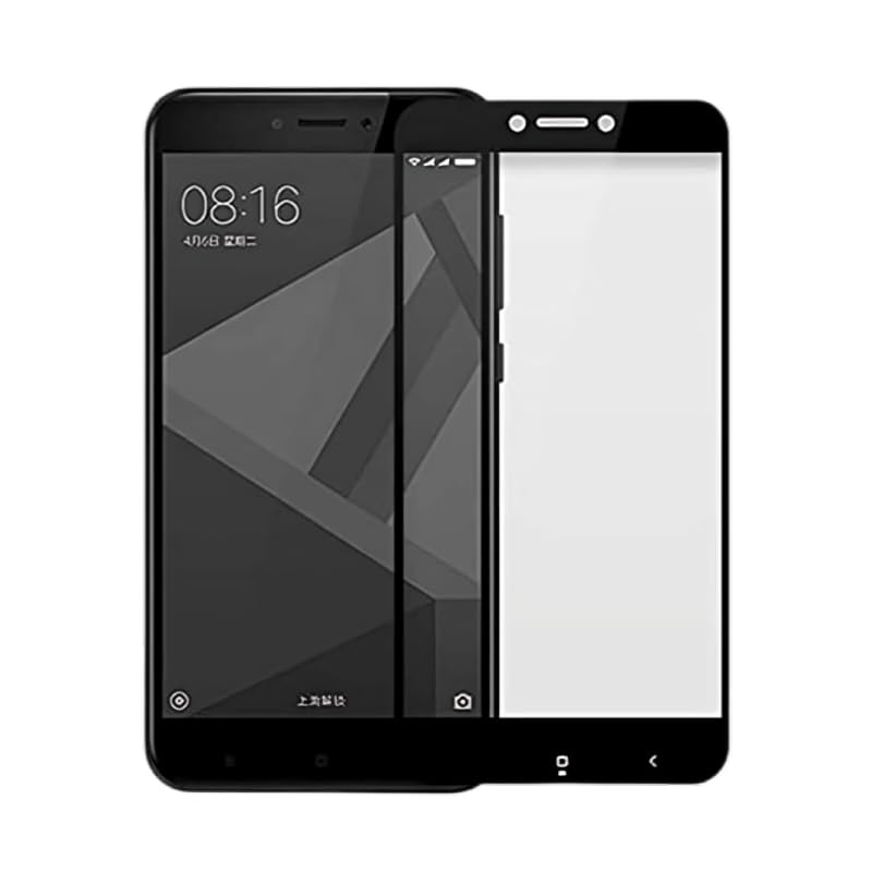 شاشة حماية زجاج لتغطية كاملة سهلة التركيب بدون فقاعات بحساسية لمس عالية بحواف سوداء متوافقة مع موبايل شاومي ريدمي 4X، لون شفاف