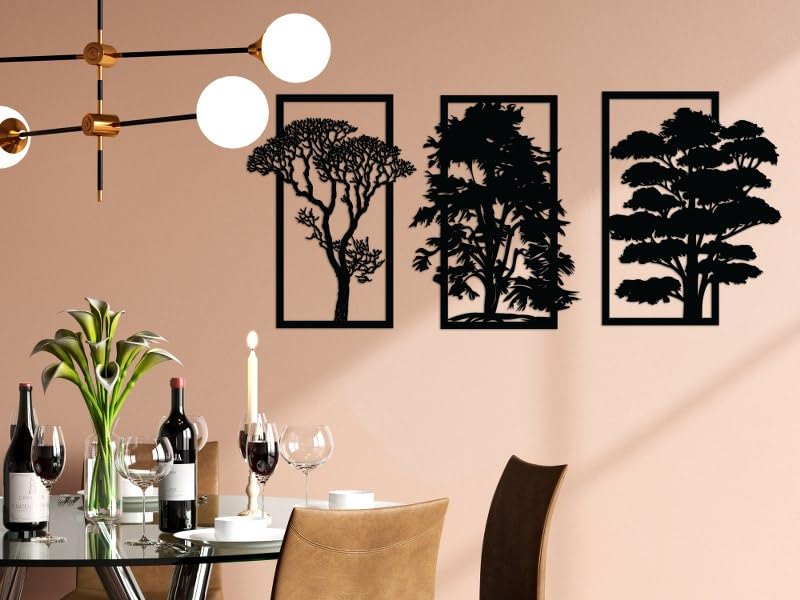 لوحة فنية جدارية خشبية مقطوعة بالليزر على شكل شجرة ثلاثية