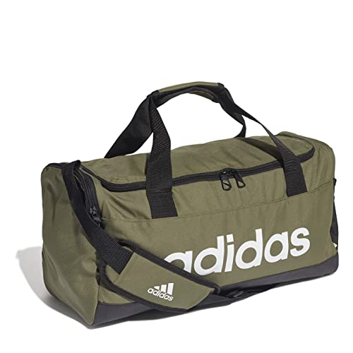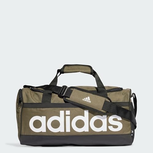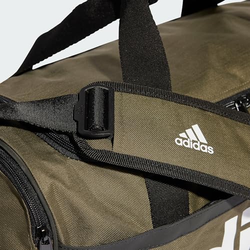 حقيبة أديداس إسينشالز دافل للجيم والتدريب، لون زيتوني، أسود، أبيض، للرجال والنساء - صغير