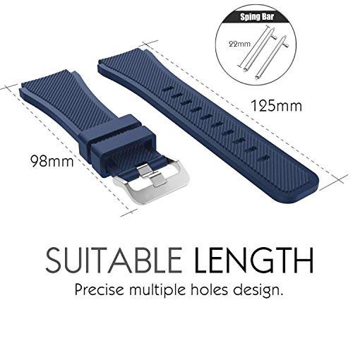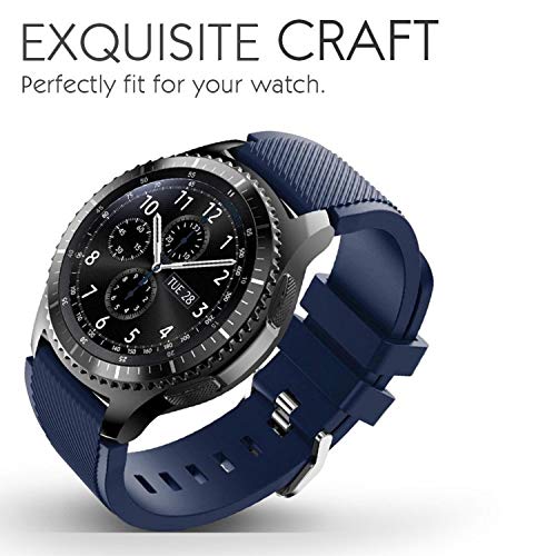 سوار ساعة سامسونج جير اس 3 فرونتير/ كلاسيك، سوار رياضي بديل من السيليكون 22 ملم مع دبابيس سريعة الفك لساعة جير اس 3 فرونتير/ اس 3 كلاسيك/ موتو 360 الجيل الثاني 46 ملم، أزرق غامق