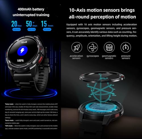 - ساعة لياقة بدنية متطورة مقاومة للماء حتى عمق 5ATM، مع 150 وضع رياضي مع خوارزمية حركة سيك بيتس. أجهزة الاستشعار 10 محاور بتقنية كشف الحركة، بما في ذلك التعرف على أسلوب السباحة ومعدل نبضات القلب تحت الماء وتتبع SWOLF.