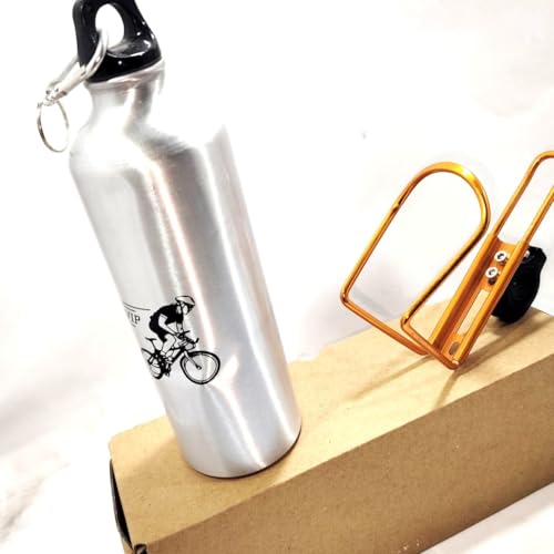 Generic - زمزمية مياة الامونيوم للدراجات الهوائية + حامل معدني قوي (حامل دهبي بالافيز)