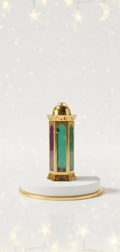 Generic - فانوس رمضان معدني اضاء,لون دهبى زجاج اخضر تصميم سطانى وقبه وهلال بزخارف اسلامية خمات عاليه الجوده ديكور مناسب للمنزل والمكتب وححله دهبى