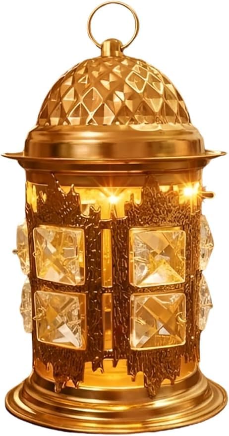 Generic - (فانوس رمضان معدن دهبي مع استرس واضاءة اصفر) بلون دهبى خمات عاليه الجوده