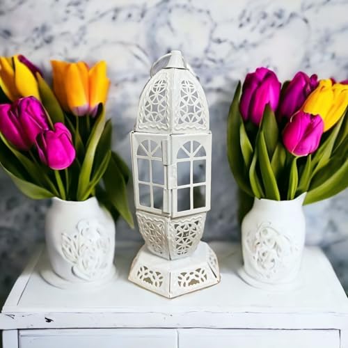 Generic - فانوس معدن شمعدان - ابيض + شمعه هديه