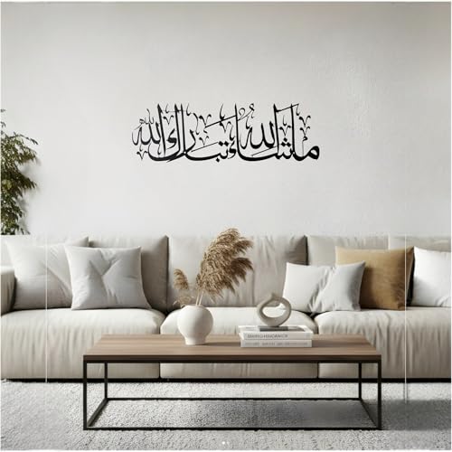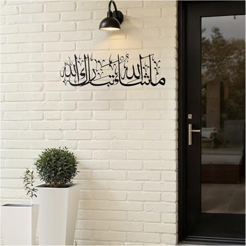 - 1. ✨ تصميم إسلامي فاخر: لوحة معدنية مكتوب عليها “ما شاء الله تبارك الله ” بخط عربي أنيق يعكس روحانية وجمال الخط الإسلامي.
