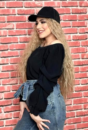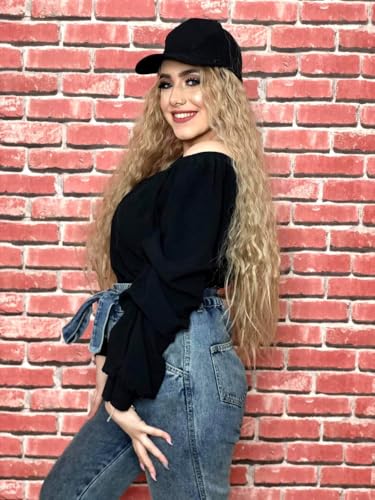 Generic - مستعار شعر باللون الشقر مجعده مصنوعه من الألياف حراريه مع كاب اسود لسهولة التركيب