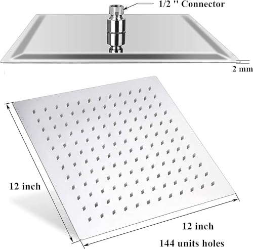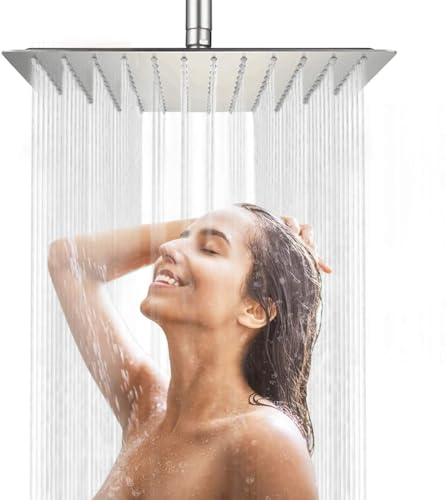 Generic - رأس دش استحمام بتصميم مربع من نير مون – تصميم شلال فائق النحافة بسمك 1 ملم – مصنوع من الفولاذ المقاوم للصدأ – مزود بفوهات سيليكون ورذاذ قوي – مقاس 30 × 30 سم