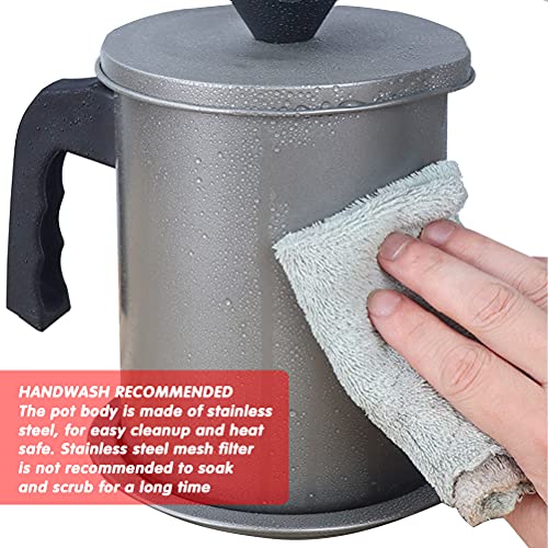 - 【Multiple uses】- The oil pan makes bacon grease, edible oil, coconut oil, fat, and frying oil reusable by filtering particles, and provides convenient storage. It can also be used for sieving flour in the daily kitchen, brewing loose leaf tea, filtering lumpy gravy, etc.