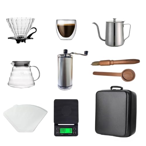 Generic - 10 Pack V60 Coffee Maker Set Pour Over Drip Coffee Maker Set With Coffee Grinder and Coffee Server and Coffee Bean Dosing Cup with spray,coffee kettle,filter,coffee scale,glass drip funnle