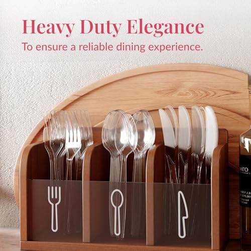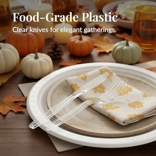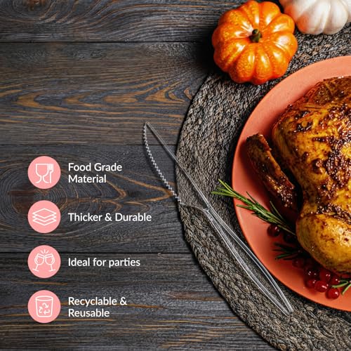 Prestee - 100 Clear Plastic Knives | Heavy Duty Plastic Silverware Knives | Fancy Plastic Cutlery | Elegant Disposable Knives Pack | Bulk Disposable Flatware | Plastic Utensils Set | Nice Disposable Silverware