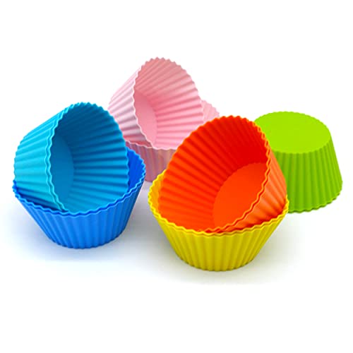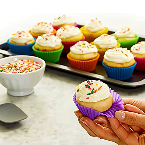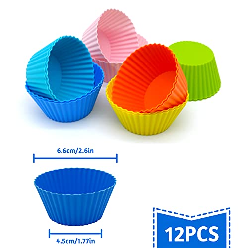 Generic - 12 قطعة من قوالب الكب كيك من السيليكون، علب خبز قابلة لإعادة الاستخدام، بطانات كب كيك، قوالب مافن في علبة تخزين، 6 ألوان